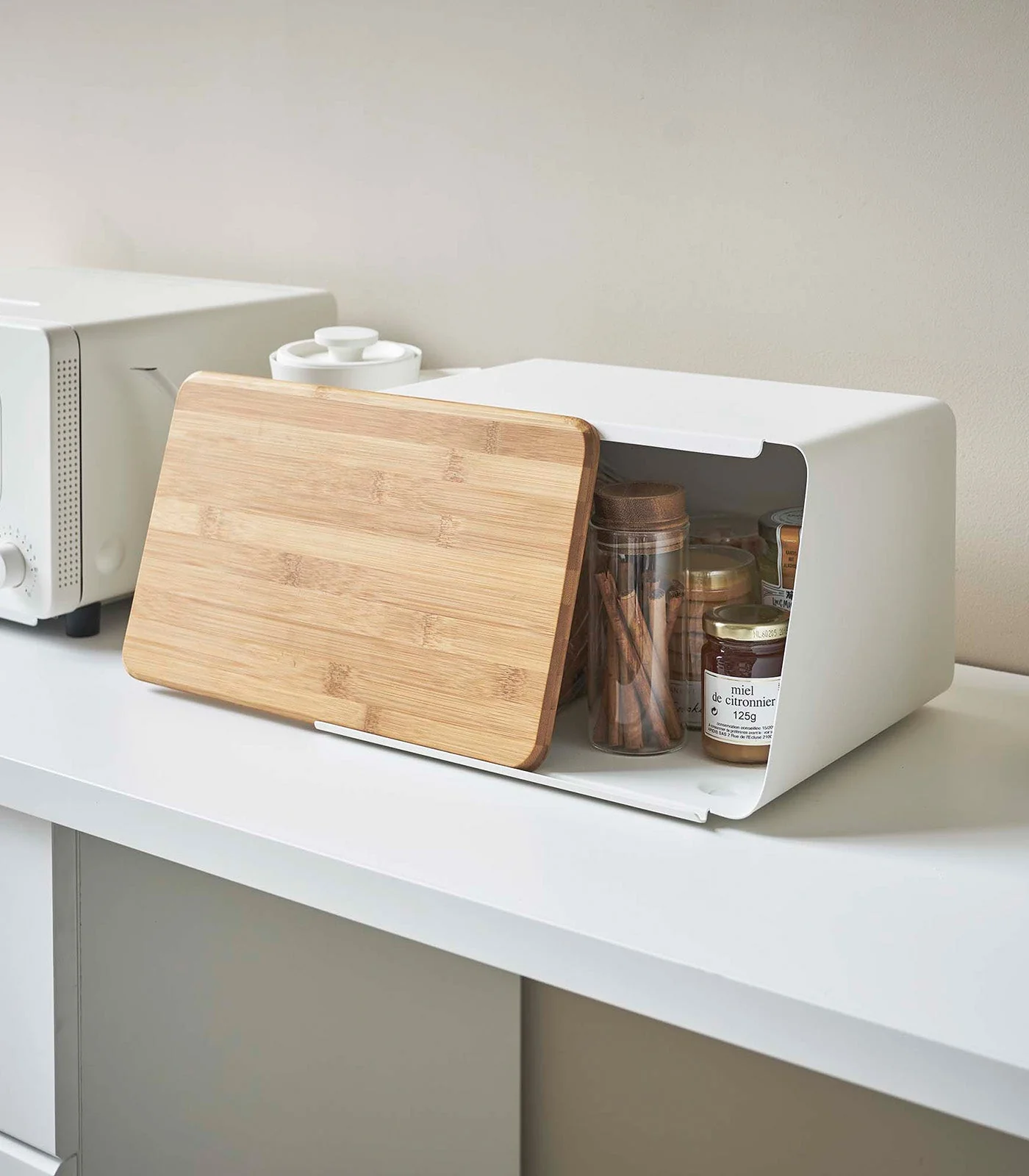 This 2-in-1 bread box is the *cutting edge. Looking for a way to efficiently store your breads and other baked goods? This innovative 2-in-1 solution comes with a removable bamboo lid that also functions as a cutting board. The box is designed to provide optimal airflow for freshness, just like all of our breadboxes. Slide open the bamboo lid to admire your loaves and enjoy a streamlined breakfast routine! Discover more of our bread boxes and inspiration here.