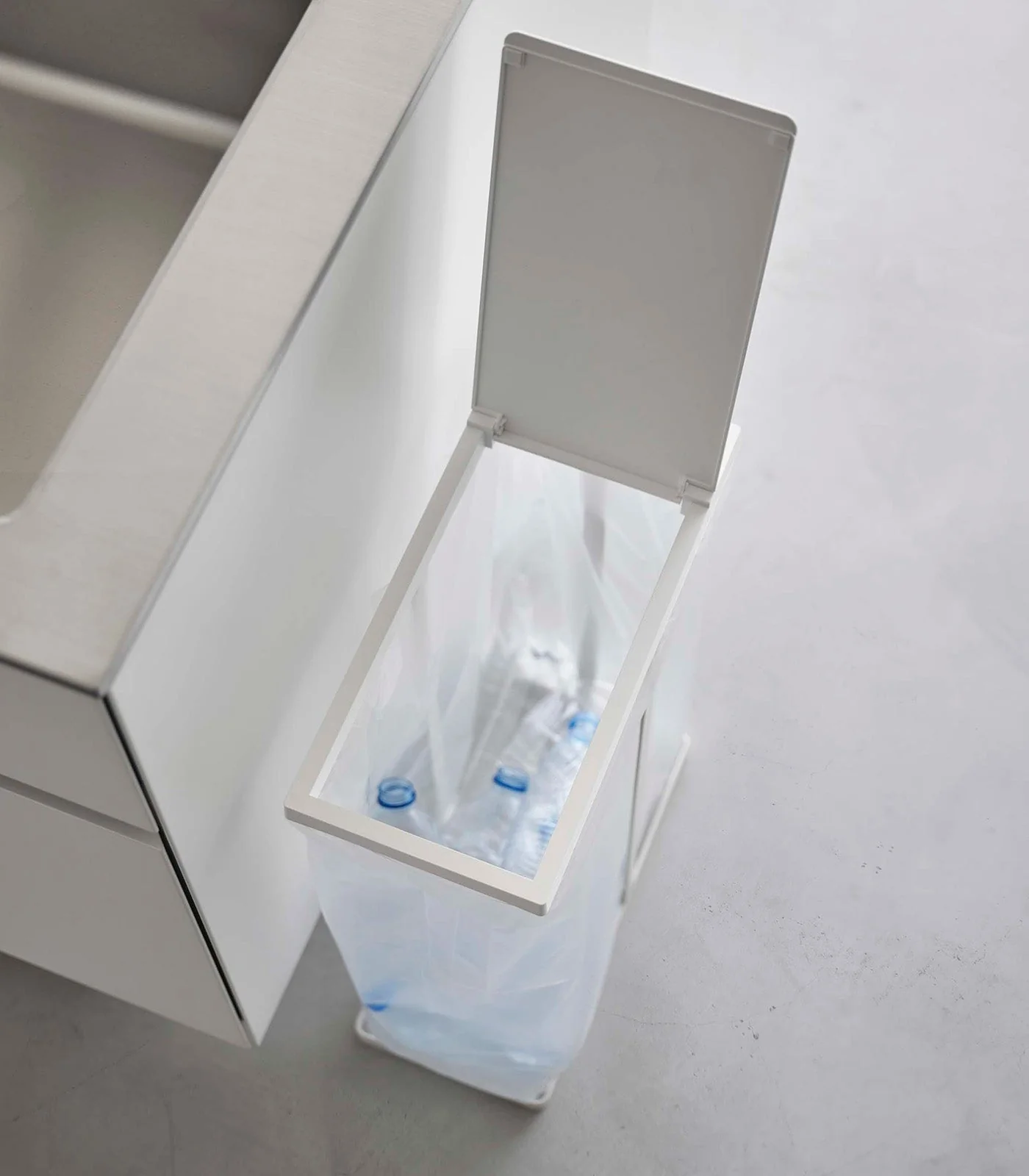 Best bin-less bin. Simplify waste management with this slim and minimal design. A lightweight yet sturdy frame, perfect for lining up multiples to collect different types of recyclables, or as a portable option for outdoor settings. Simply line with a trash bag and lift the lid easily with one hand. Gets the job done!