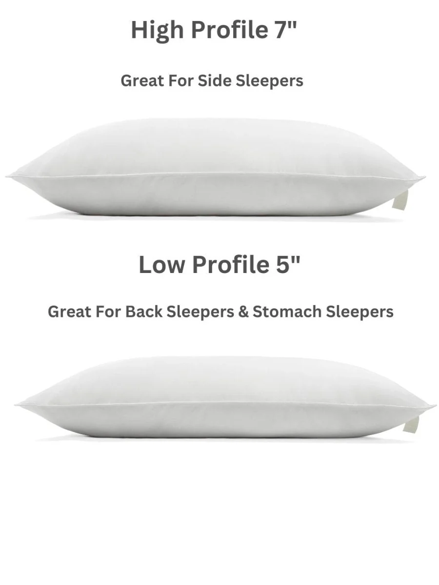 Our Plant-based pillow height is 7 inches in the high profile and 5 inches in the low profile -